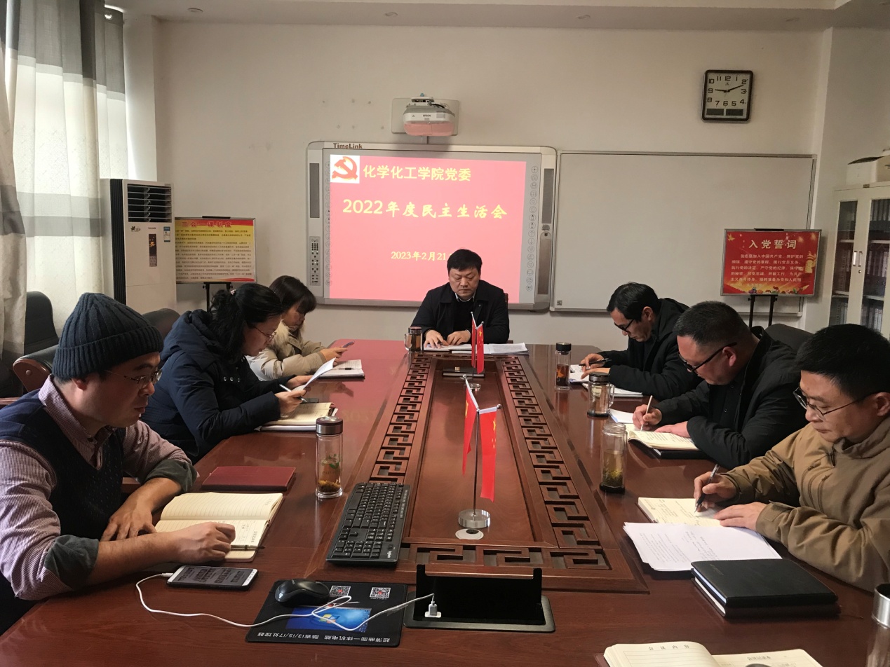 2023年2月21日,161sex 处级党员领导干部民主生活会在化学实验楼313“党员之家”召开。161sex 党委全体处级干部参加民主生活会,会议由学院党委书记郭鹏主持。