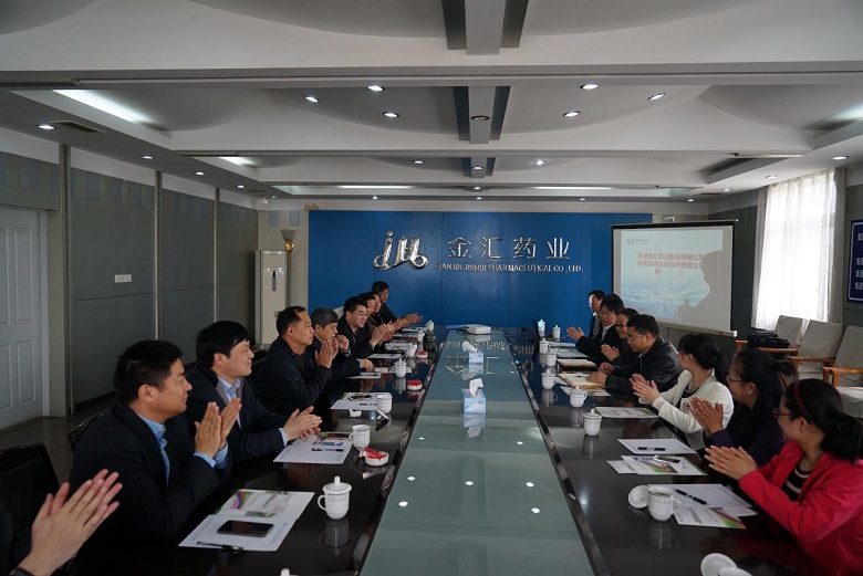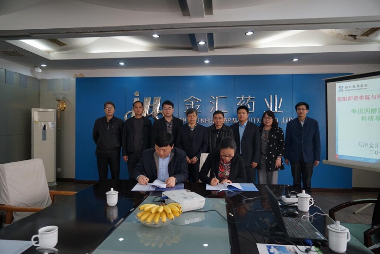 与河南甾体生物科技有限公司开展横向课题研发合作签约仪式在天津金汇药业集团总部隆重举行,信阳师范学院校长李俊亲自出席并见证了签约仪式。