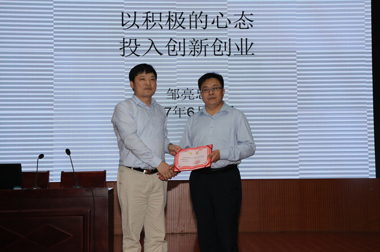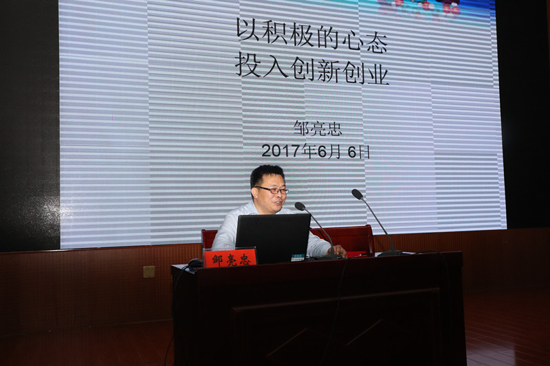 大学生创新创业校外兼职导师。讲座过程中,邹亮忠首先介绍了自己自1994年从信阳师范学院走向社会至今的成长经历,随后分别从人为什么要创业、大学生如何完成社会人的蜕变等方面为同学们做了精彩的诠释,最后,邹亮忠从师兄的角度给即将踏上工作岗位的毕业生们提出了四条诚恳的建议:一是学好扎实本领,永远领先一步;二是端正人生态度,着力建设个人品牌;三是整合资源,时刻准备响应时代召唤;四是快乐出发,完成一场探索未知世界的旅行。现场反响热烈。