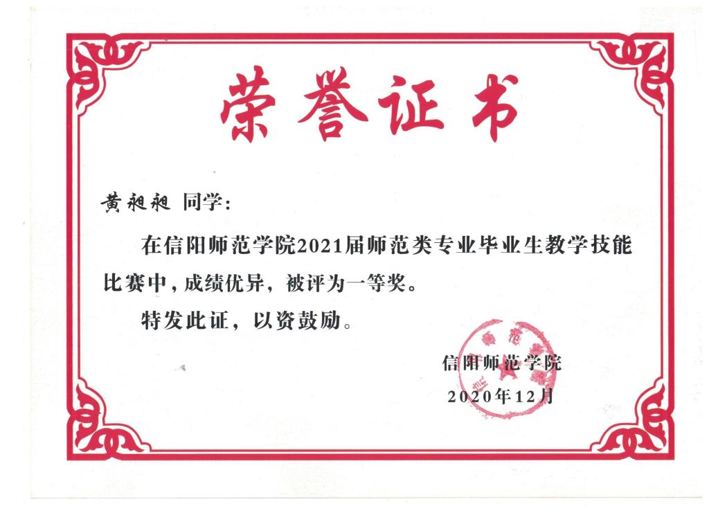 2021届信阳师范学院师生类教学技能一等奖